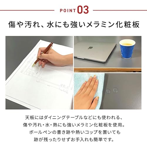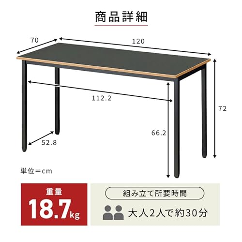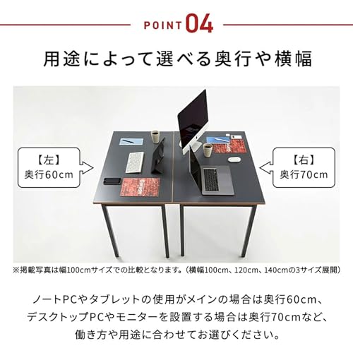 シンプルかつ丈夫で使いやすいデスクです。いくつかカラーバリエーションがあるのですが、我が家にあるのはホワイトバージョン。幅は100cm、120cm、140cmから選択可能。奥行きは60cmと70cmの二種類があります。