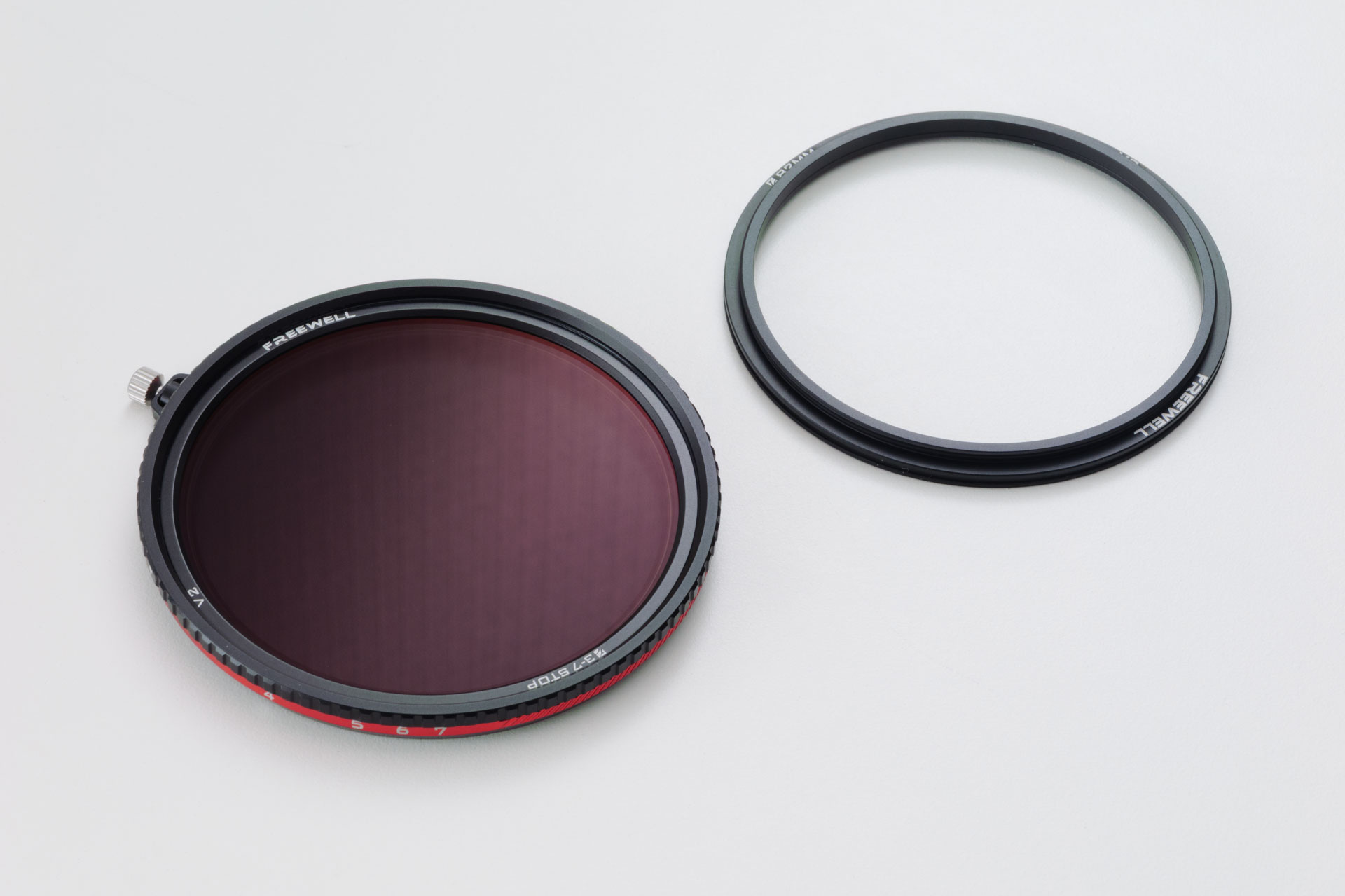 レンズの径に合わせたベースリングを用意することで、FREEWELL V2磁気ハイブリッドVND/CPLフィルターを装着できます。