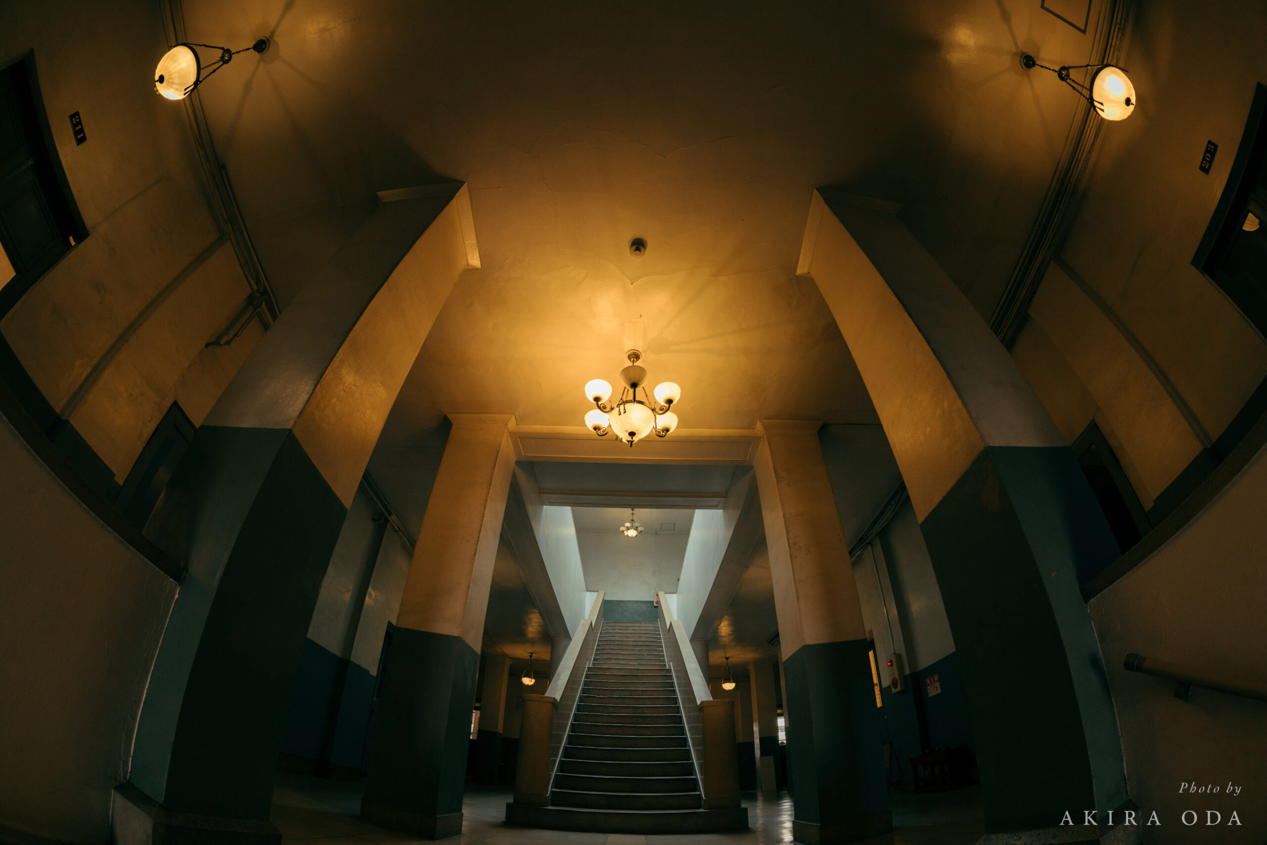 海岸ビルヂングへ。歴史ある建築を魚眼で写真に収めました。ここにある「The Book End」はギャラリーの展示や、写真集の販売があってとても素敵な場所です。