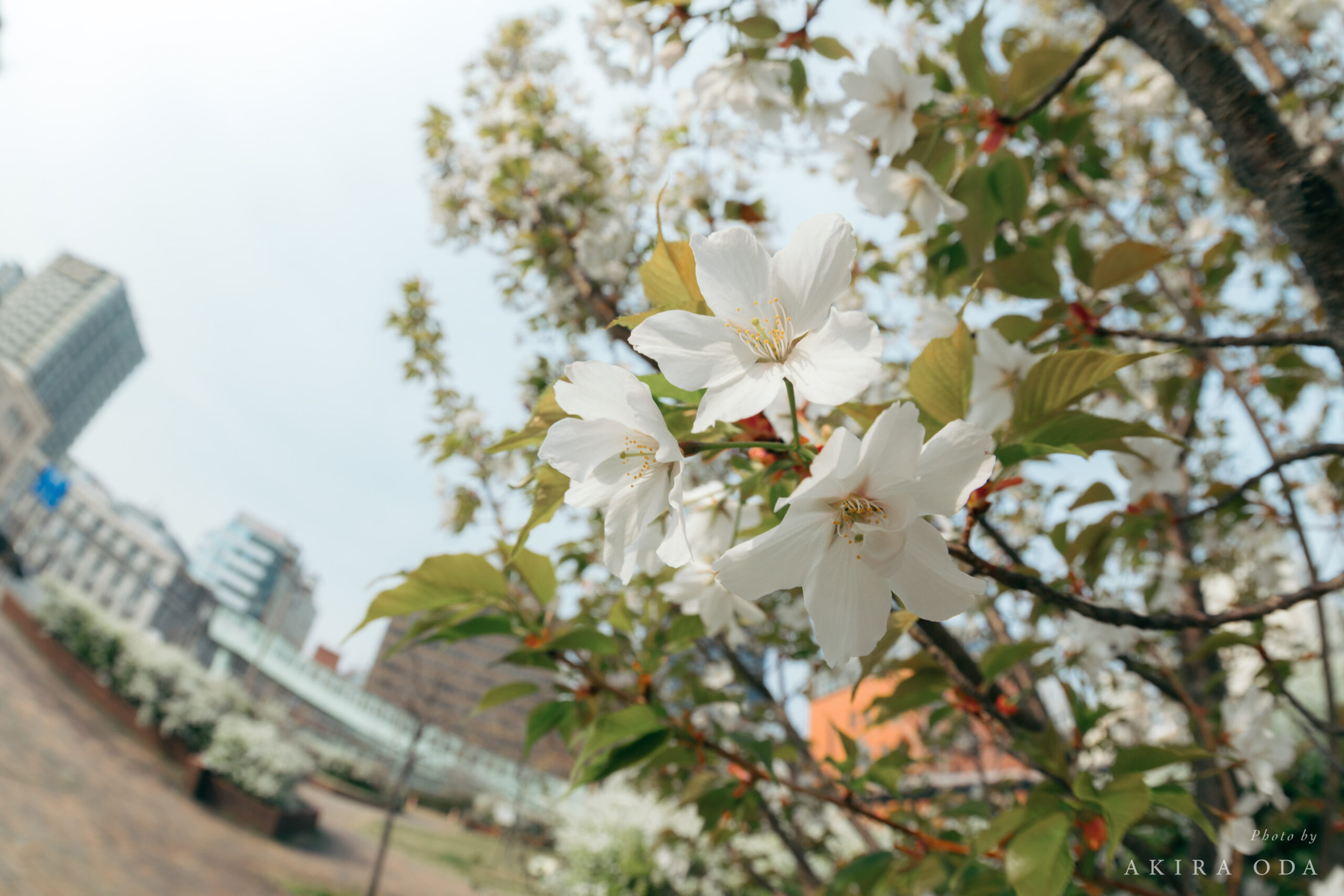 ポートタワー方面へ。3月末で桜が咲き始めていました。